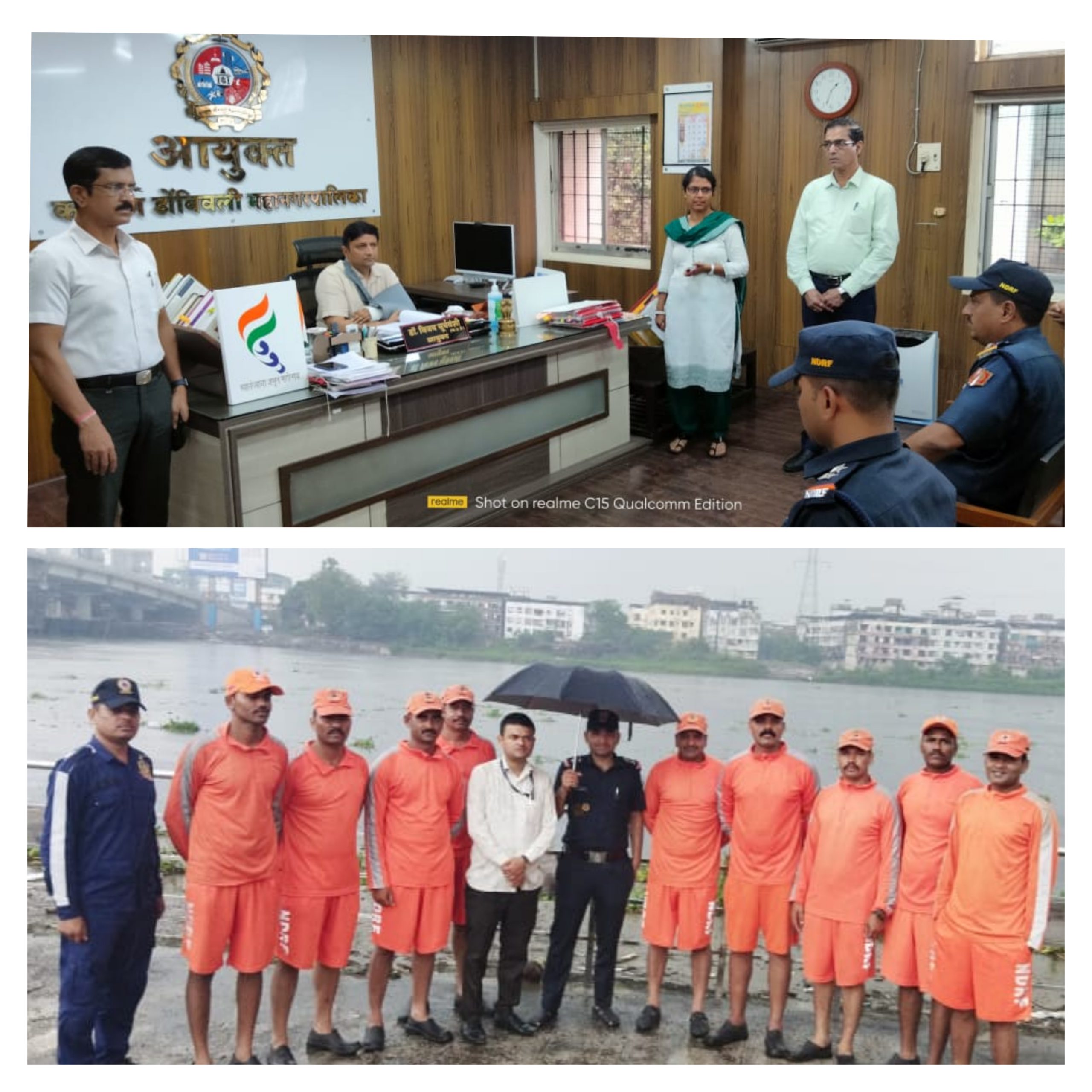 या एनडीआरएफच्या टिमचे पथक प्रमुख निरीक्षक राजेश यावले यांनी आपल्या टीमसह काल सायंकाळी महापालिका आयुक्त डॉ. विजय सूर्यवंशी यांची भेट घेतली आणि त्यांच्याशी चर्चा करुन कल्याण डोंबिवलीतील भौगोलिक परिस्थितीचा आढावा जाणून घेतला. अतिवृष्टीच्या काळात दुर्गाडी परिसरात तसेच अंबिका नगर, शहाड या सखल परिसरात पाणी साचून लोकांची मोठया प्रमाणात गैरसोय होते, यासाठी आज एनडीआरएफच्या पथकाने पथक प्रमुख निरीक्षक राजेश यावले, महापालिकेचे आपत्ती व्यवस्थापन अधिकारी दिपक निकम यांच्या समवेत दुर्गाडी गणेश घाट परिसर, अंबिका नगर, शहाड या परिसराची पाहणी केली.