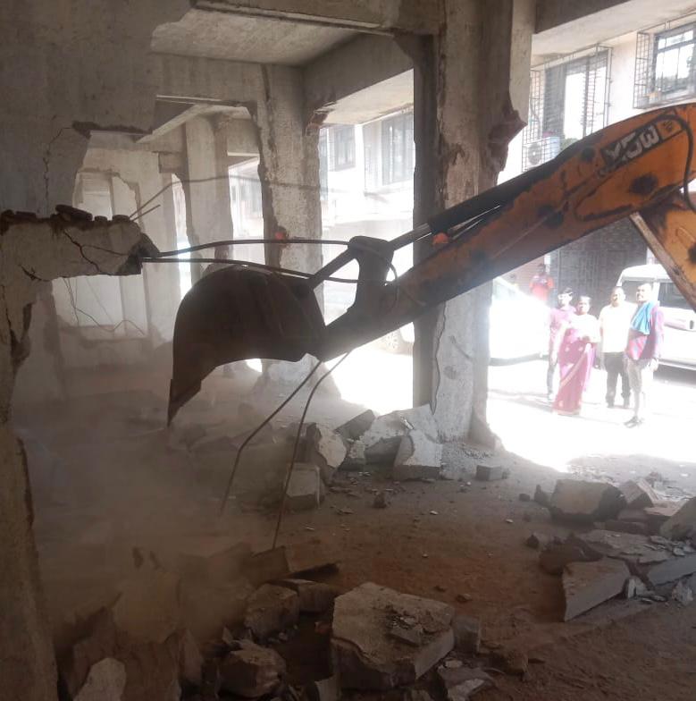 हि कारवाई अनधिकृत बांधकाम नियंत्रण विभागाचे कर्मचारी यांच्या मदतीने आणि २ काँक्रीट ब्रेकर व १० मजूर यांच्या सहाय्याने करण्यात आली.