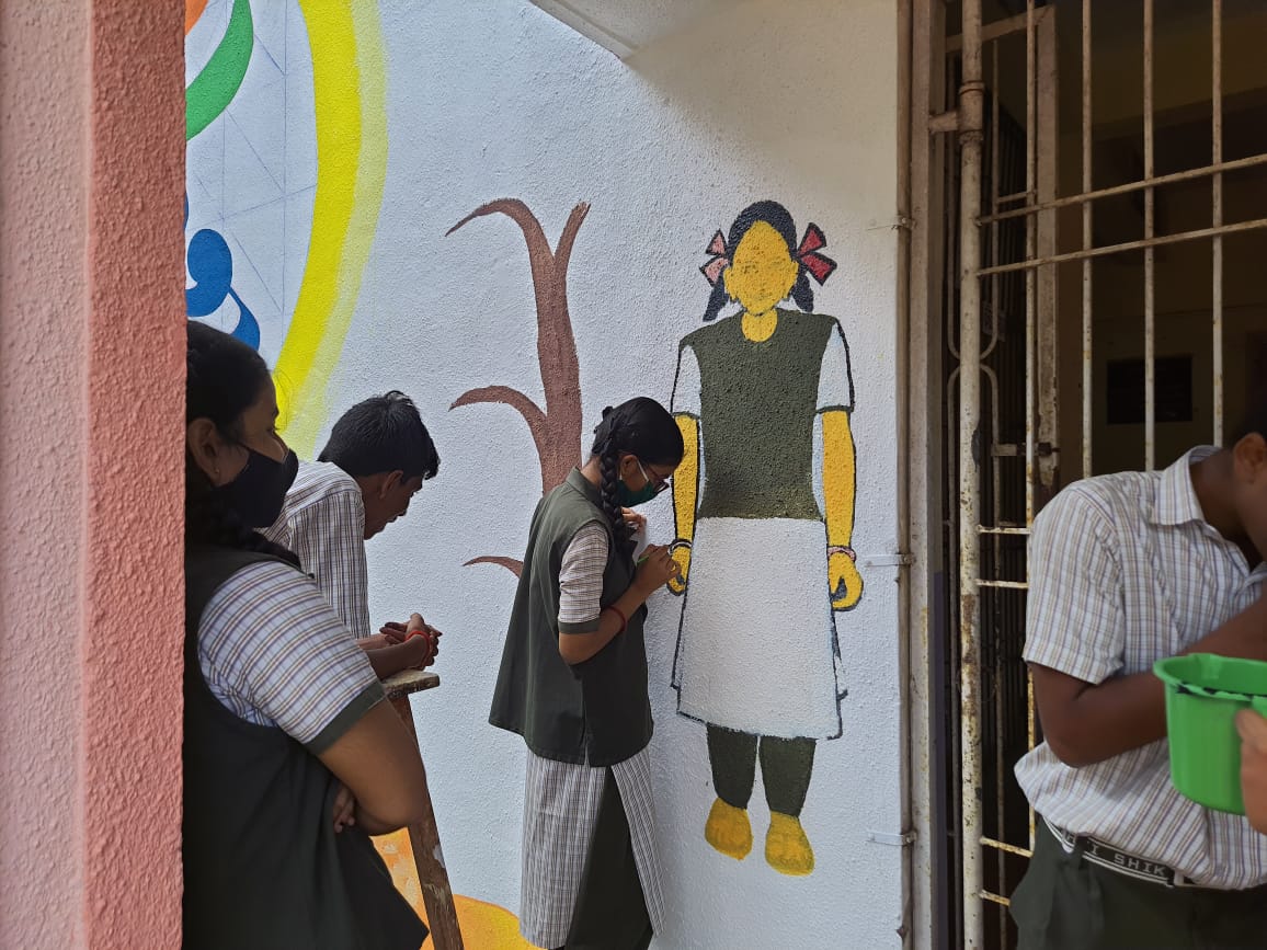 कल्याण डोंबिवली महानगरपालिका आणि रोटरी क्लब कल्याण यांच्या संयुक्त विद्यमाने स्वातंत्र्याचा अमृत महोत्सव निमित्ताने शहरातील शाळा, सोसायटी, गार्डन परिसरातील भिंतीवर स्वच्छता, शुन्य कचरा, पर्यावरण, प्लास्टीक मुक्ती, सर्वधर्म समभाव अशा विविध विषयांवर चित्र काढण्याचे अवाहन केडीएमसी उपायुक्त रामदास कोकरे यांनी शहरातील सर्व शाळेतील सर्व कलाशिक्षकांना केले होते. त्यानुसार प्रजासत्ताक दिना पासून नूतन विद्यालयात माझी वसुंधरा या विषयावर कलाशिक्षक श्रीहरी पवळे आणि विद्यार्थ्यांनी शाळेच्या भिंतीवर सुंदर रेखाटन करण्यास सुरवात केली आहे.