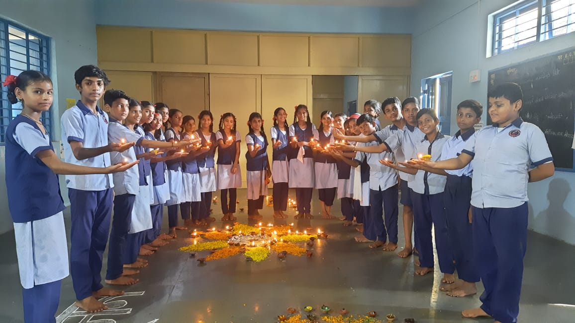 यावेळी अश्मयुगात दोन दगड एकामेकावर घासल्याने आगीचा शोध लागल्यानंतर माणसाच्या प्रगतीचा आलेख उंचावत गेला हे विद्यार्थ्यांना कथेच्यारूपात संध्या जगताप या शिक्षिकेने मांडला. दीपक पूजनाच्या कार्यक्रमाची संकल्पना शाळेचे मुख्याध्यापक अजय पाटील यांची होती. यावेळी चित्रा पाटील, रसिका पाटील, अनघा दळवी या शिक्षकांनी विद्यार्थ्यांच्या मदतीने दिव्यांची आरास केली. पानाफुलांच्या रांगोळ्या काढून दिव्यांनी त्या सजवण्यात आल्या.
