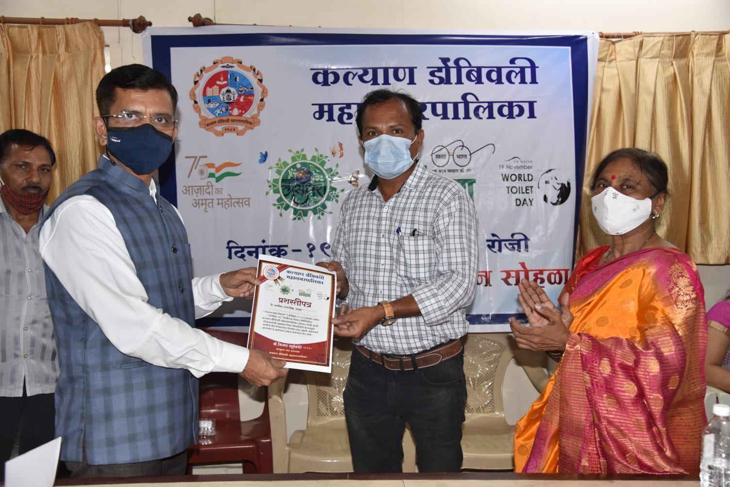 या कार्यक्रमात महापालिका क्षेत्रात सार्वजनिक शौचालयांची देखभाल करणाऱ्या बारा सामाजिक संस्थांचा सन्मानपत्र व गुलाब पुष्प देऊन गौरव करण्यात आला, तसेच आजच्या जागतिक शौचालय दिनाचे औचित्य साधून कल्याण येथील इंदिरानगर झोपडपट्टी परिसरात लोकशाहीर अण्णाभाऊ साठे नागरी वस्ती योजने अंतर्गत सार्वजनिक शौचालयाचा शुभारंभ करण्यात आला.